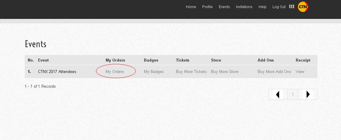 1. Login to the Event site on https://eventregistration.ctnadmin.com/