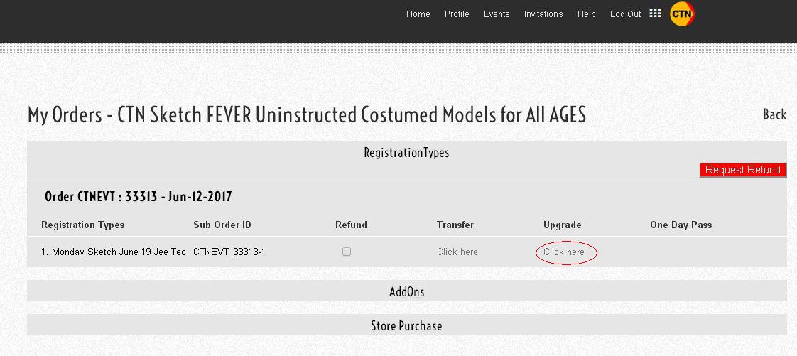 Then you can see the tickets there. Click on the click here link under the Upgrade corresponding to the ticket that you want to upgrade.